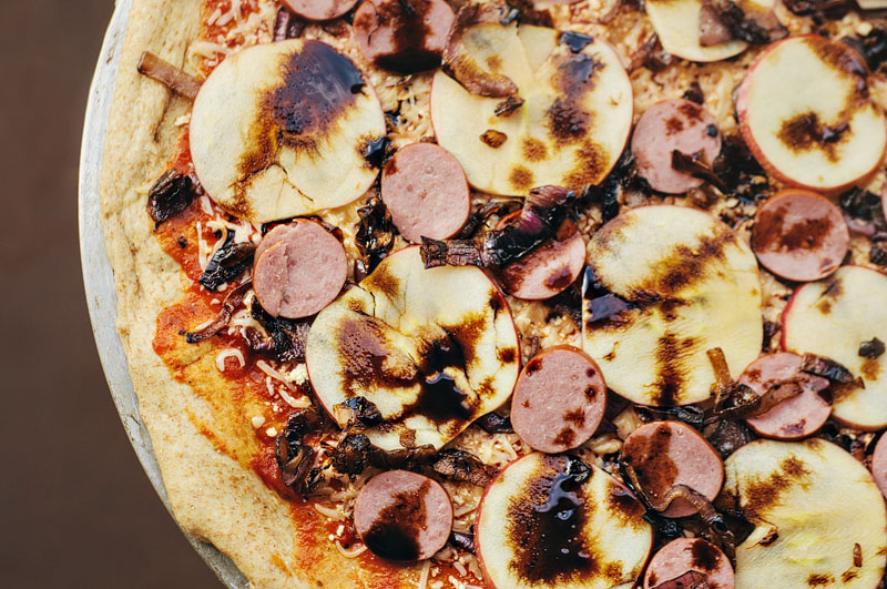 This past weekend, we made a whole wheat pizza with turkey kielbasa, apple, caramelized onion, and balsamic reduction. Below, you’ll find our recipe using Hodgson Mill ingredients and a chance for you to win a $25 Hodgson Mill pizza prize pack.