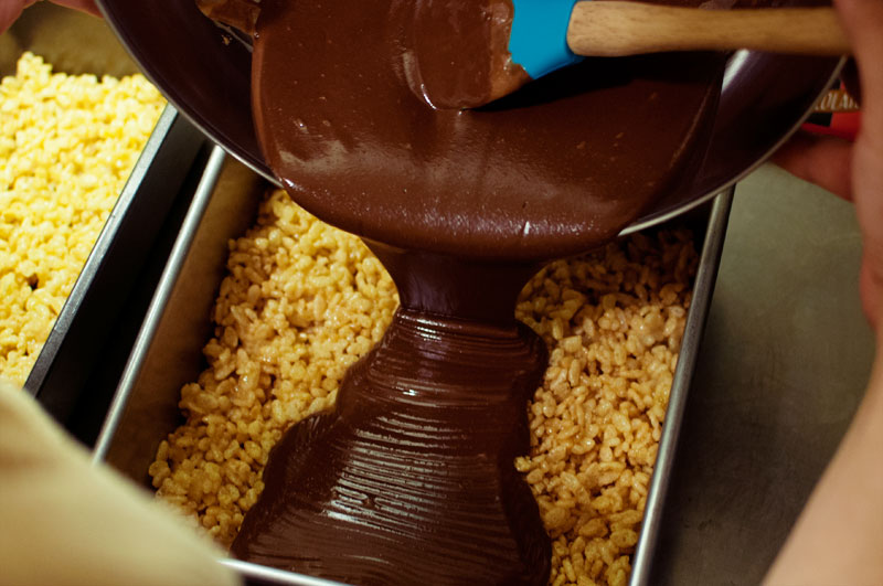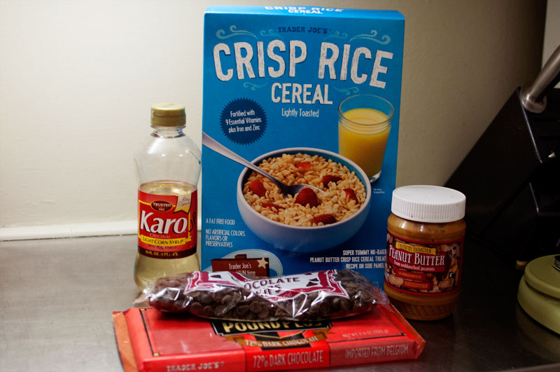 Then, things get real. Peanut butter. Chocolate. Together, all in one bowl, melted, on top of rice crispies. You catch my drift?