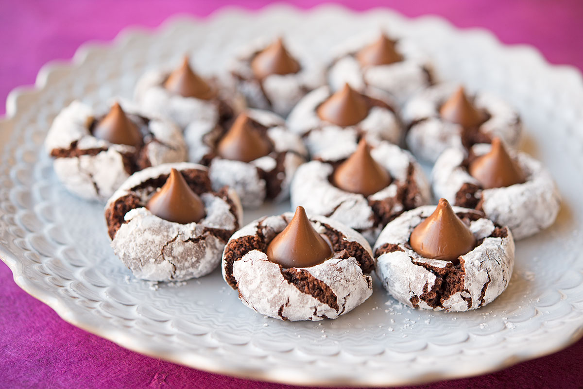 These cookies are some of my favorites – they are chocolate cookies, rolled in powdered sugar, and stuck with a kiss!