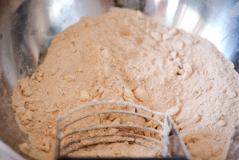 Add your butter, and use a pastry cutter (or a fork) to slice in your butter! Make sure you use cold butter so it’ll really cut into the dry ingredients.