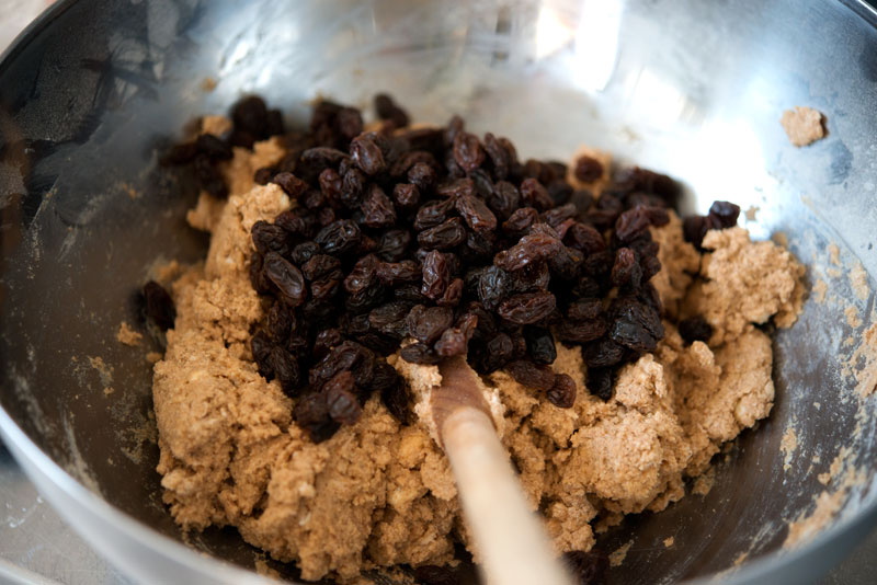 And now…add…RAISINS. I added a cup. Could have added more if I wanted, but I wanted other people to enjoy these two, and not everyone is as obsessed with raisins as I am.