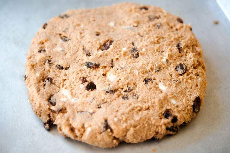 Shape your dough into a circle, and then cut it into eight pieces. Pull ’em apart a bit so they’ll be individual scones!
