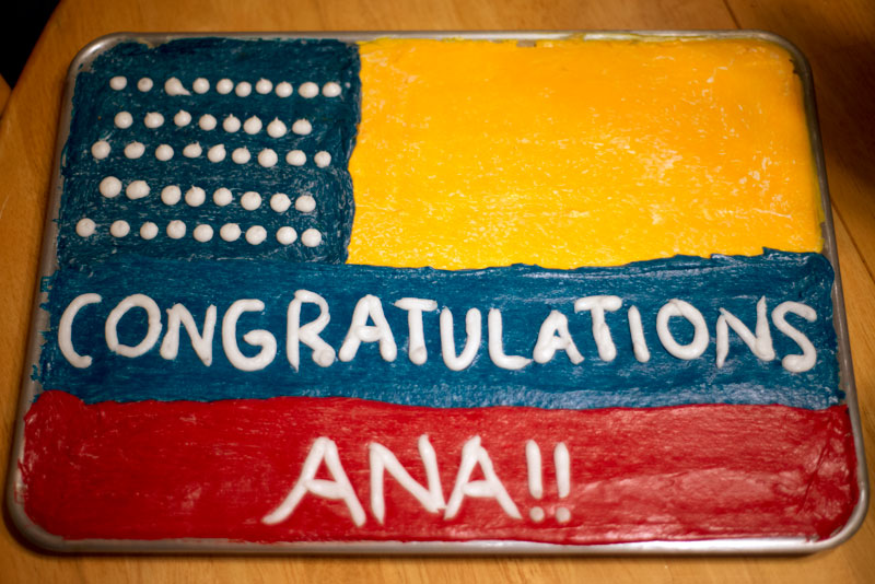 In order to properly celebrate, we had a party, and Corelyn and I made her a coconut cake (something she loves) with a big old Colombian-American Flag on it. We are so excited that Ana became a citizen, and that we got to share the memory with her! She loves our President (as I do) and when he was giving his inaguration speech, he said something that immediately reminded me of Ana: