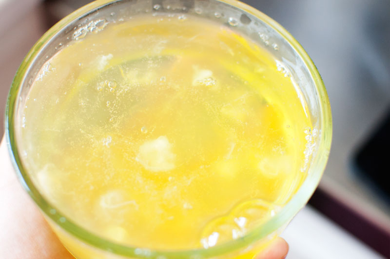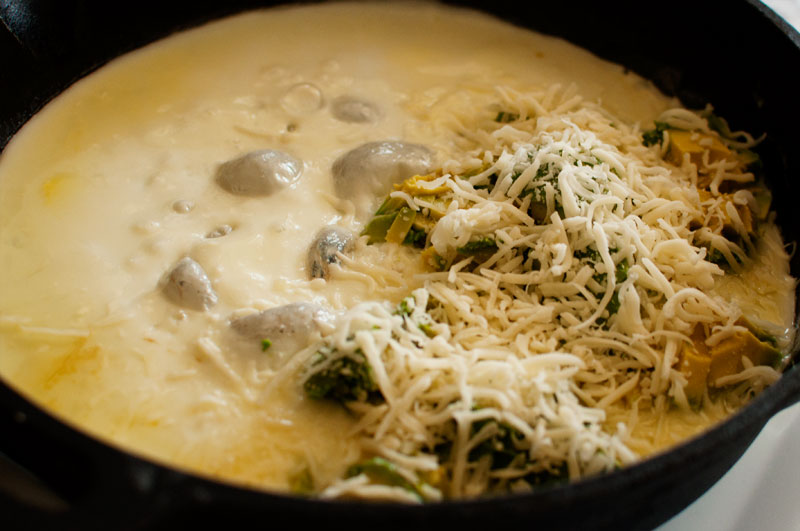 You’re going to want to pour your whites into a pan with some olive oil, and then add your avocado and your cheese, or whatever your heart desires.