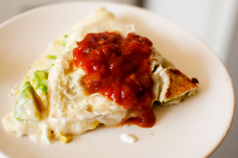 Cut yourself a piece, and serve with some salsa! Or sour cream! Enjoy with a steaming cup of coffee.