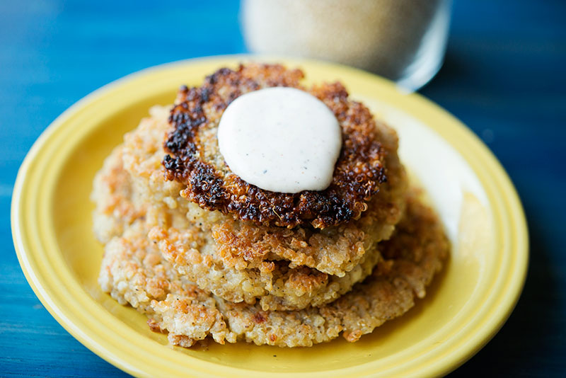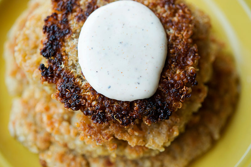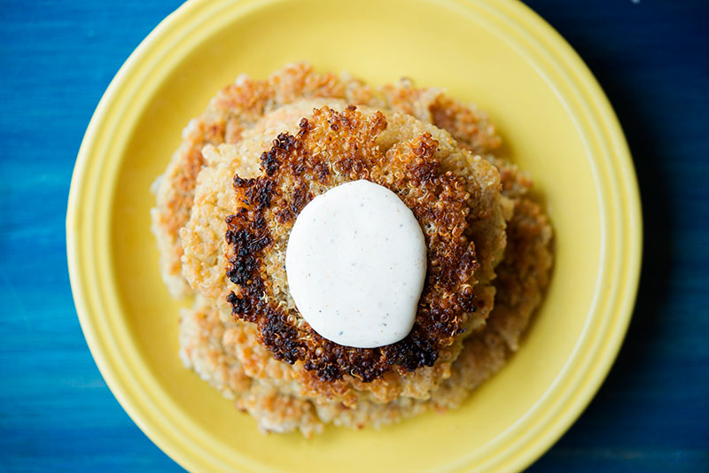 This recipe strikes a good balance of being simple, with such instructions as, “combine all ingredients in a bowl” and being time intensive, the cakes cook for 10 minutes each, five minutes on each side. I highly recommend the roasted garlic and lemon aioli, it was beyond delectable; the cayenne and garlic gives it a nice punch.