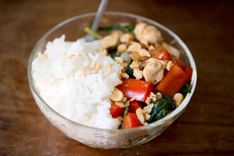 Top with your peanuts and cilantro over rice. This easy recipe will quickly work its way into your regular dinner line ups!