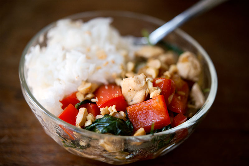 Melissa and I are always on the lookout for interesting gluten free recipe, so when she found a recipe for Spicy Thai Chicken that she could make, I was in! We changed it up a little, however, to use what we had on hand.