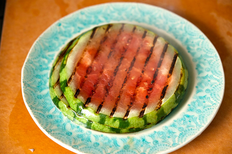 When it comes to culinary exploration, Jennie and I will try anything at least once. Probably twice. We’d heard rumblings that watermelon could be grilled, and since I’m not much of a watermelon fan, it seemed like we had nothing to lose by giving it a try.
