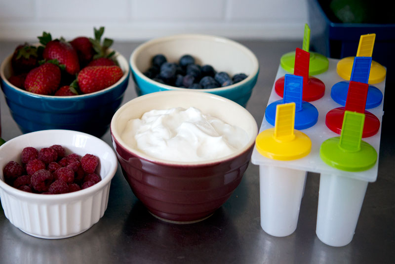 Summer is here!! It’s heating up in LA and we’re getting ready for a summer full of barbecues, the beach, and of course, Shark Week. One of my fave snacks as a kid was popsicles, and I am excited to finally delve into the world of making them myself! Now, you can get popsicles at the store, but they’re full of sugar or they’re expensive if they’re “made with real fruit.” So I made these babies with yogurt and berries, at home, easy peasy!
