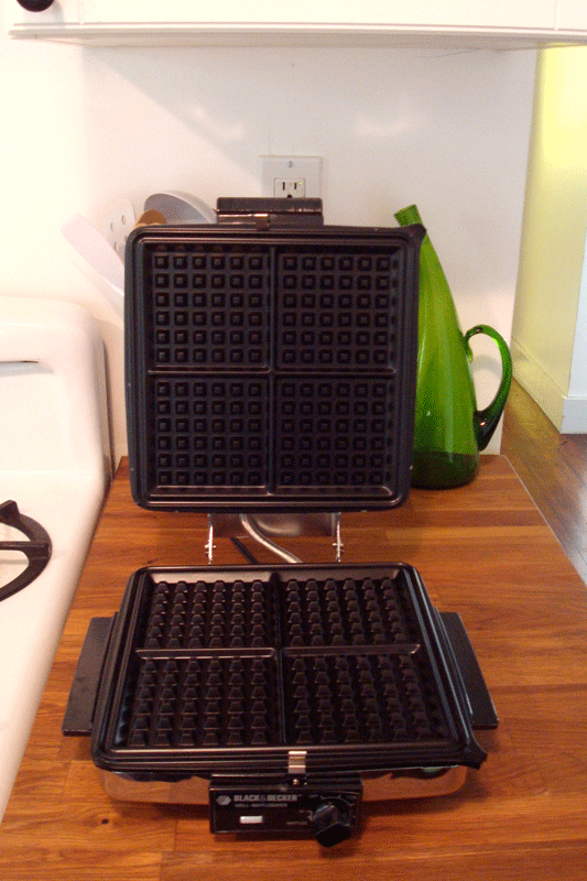 My friend Stef recently got a waffle iron from her dad in the mail (thanks Stef’s dad)!
