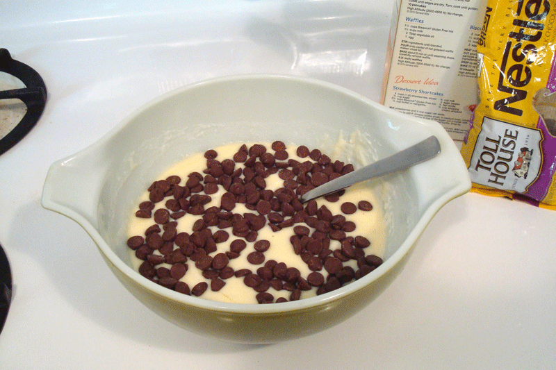 Since the box had multiple recipes for the different uses of the mix we decided to make a final batch of chocolate chip pancakes just for fun.