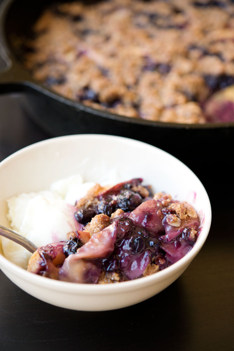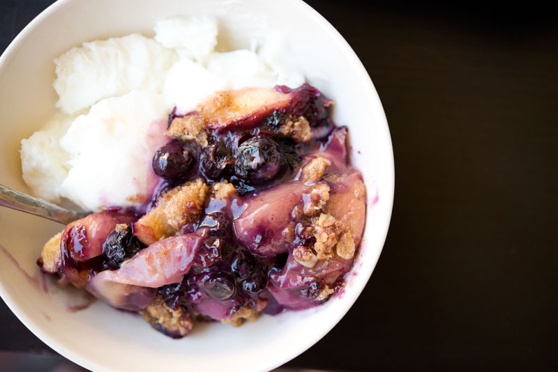 Serve your crisp with frozen yogurt or ice cream – whatever you prefer. I served it with froyo and I was definitely not disappointed – the tartness of the yogurt went perfectly with the sweetness of the blueberry.