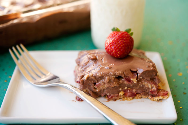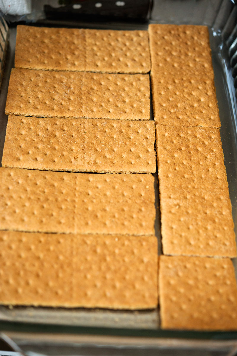 Chill until set, preferably a few hours or overnight so the graham gets soft and delicious. Eat cold out of the fridge with a tall glass of milk!