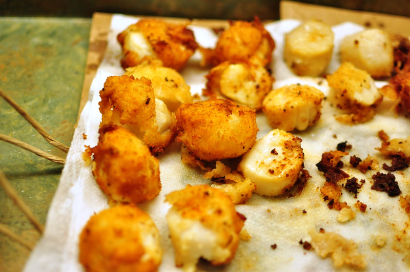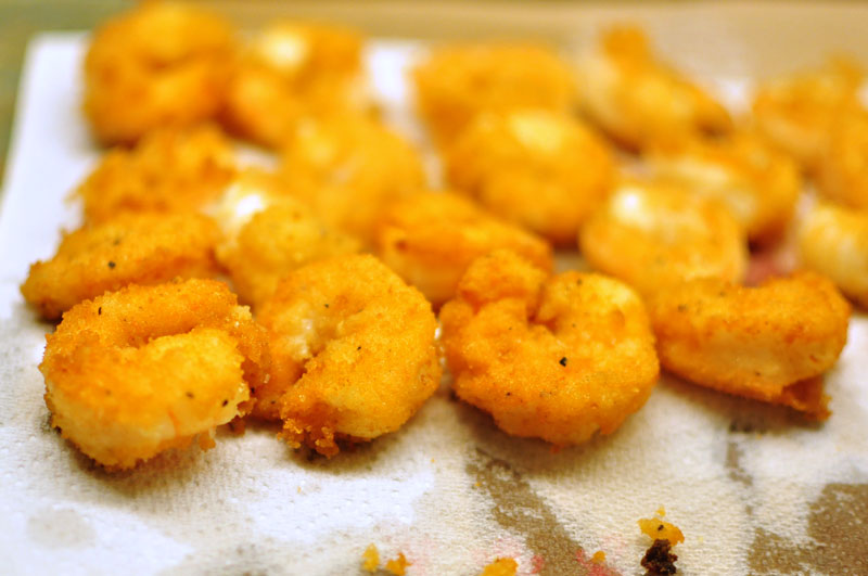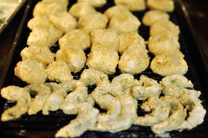 Here are the shrimp and the scallops, ready to go into the deep fryer!