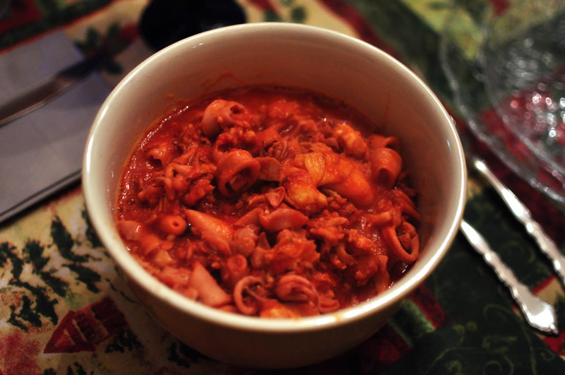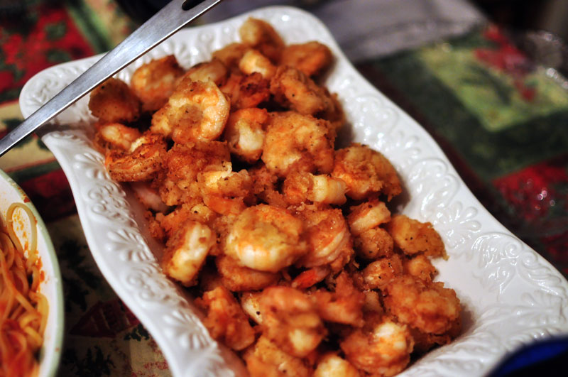 Merry Christmas, everyone! For Christmas Eve dinner in my family, we celebrate with a Feast of Seven Fishes, as the Italians of Southern Italy. This year, we had squid, crab, lobster, scallops, shrimp, mussels, and clams. We steam the clams and mussels, and use the crab, lobster, and squid to make a sauce. Then, we deep fried the scallops and the shrimp (as well as having shrimp cocktail and lemon and garlic shrimp.) We served it all up with lemon broccoli and a big salad – and rolls, too!